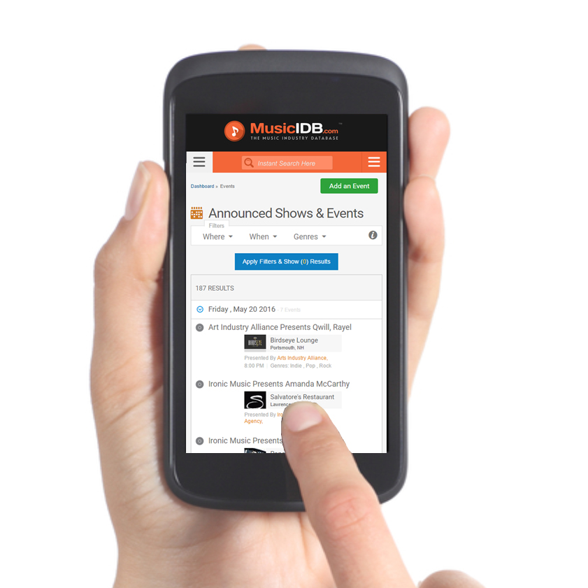 - National Platform – Thanks to this location filtering, MusicIDB.com will work for you, where-ever you are in the United States.